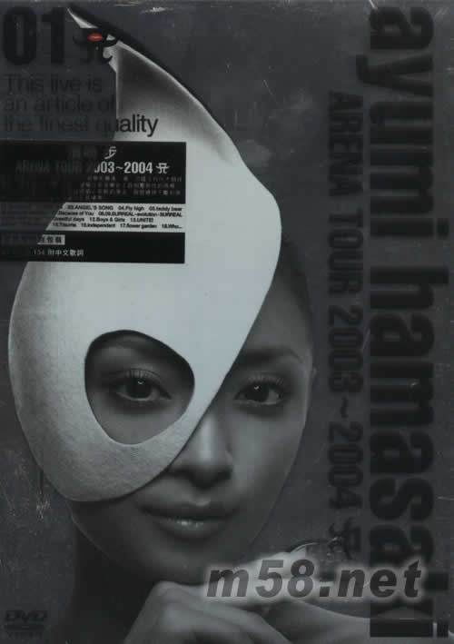 ARENA TOUR 2003-2004(海外版)(m58.net) 濱崎步 ARENA TOUR 2003-2004 初回版特別包裝 附中文歌詞 115分鐘 收錄全國12地共31場大型巡回演唱會的最后一場,于國立代代木競技場第一體育館內的精彩影像。堪稱日本音樂史上首個壓倒性的規模。從開場到完場為止,一幕幕經過細心安排的演出,散發連綿不斷的華麗感,令觀眾不約而同地進入忘我境界!
