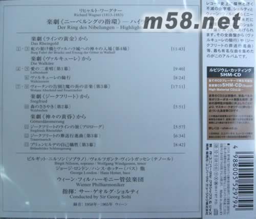 瓦格納 指環(huán)精選WAGNER: DER RING DES NIBELUNGEN - HIGHLIGHTS(SHM-CD系列日本版)(m58.net) 錄音于1958-1965年 指揮:SIR GEORG SOLTI