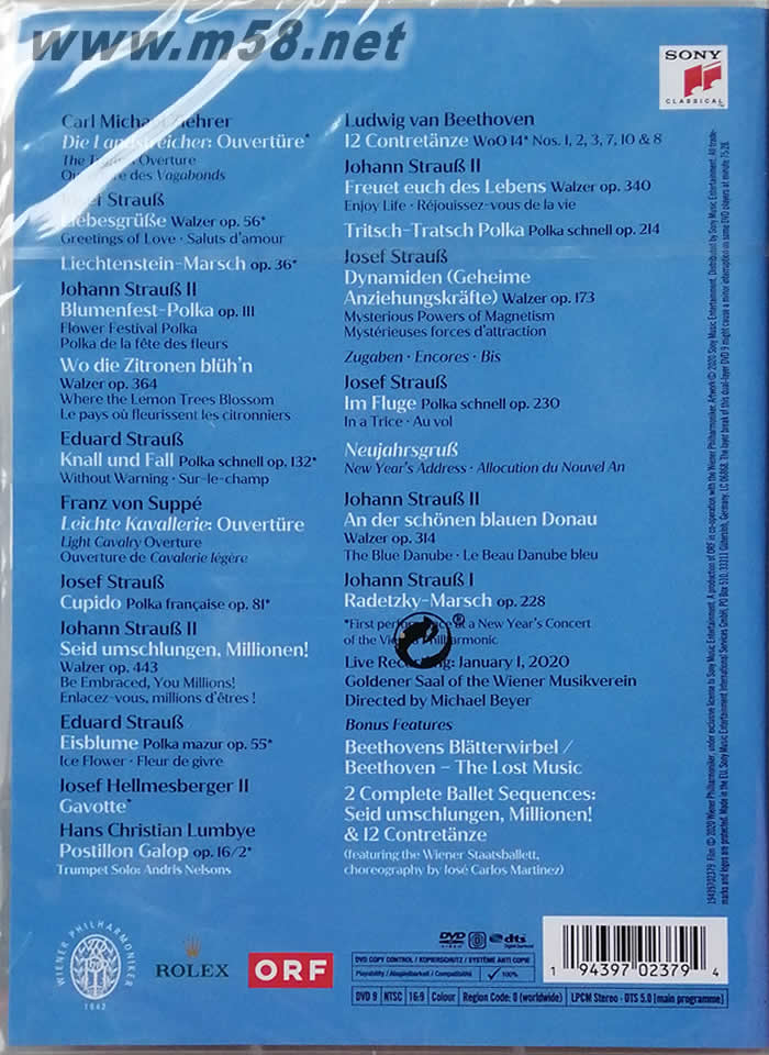 2020年維也納新年音樂會 指揮:拉脫維亞指揮家安德里斯·尼爾森斯(Andris Nelsons)DVDDVD背面圖片