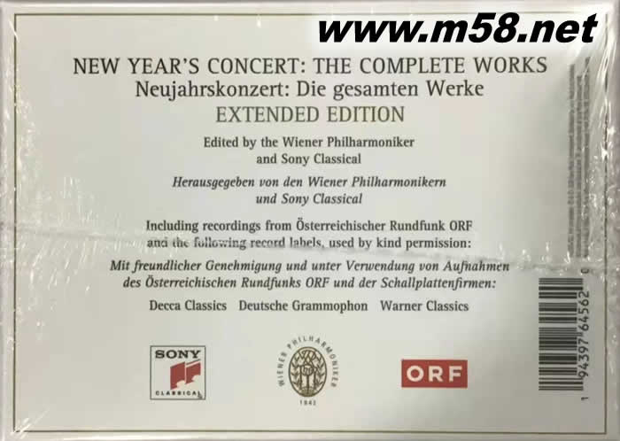 維也納新年音樂會套裝專輯2020版 慶祝古典音樂75周年(26CD 大套裝)(m58.net) 慶祝古典音樂75周年 索尼古典音樂公司在2015年發布了所有作品的完整版本 維也納愛樂樂團的新年音樂會。在“金色大廳”演出 在1941年至2015年間的博物館中,發布了標志性的現場表演 次放在一盒23張的光盤里。現在,在2020年,這個版本 將提供26張光盤的擴展版本,包括所有新曲目 在另外三張光盤上編輯。 這項的傳統始于1941年元旦, 奧地利指揮家克萊門斯·克勞斯舉辦了一場全施特勞斯家族的音樂會 直到他在1954年去世——除了1946-47年,約瑟夫·克里普斯取代了他的位置—— 克勞斯塑造了音樂會的形象。那些年它只在電臺播出。 在克勞斯的繼任者,愛樂樂團首席小提琴手威利·博斯科夫斯基的領導下 手拿小提琴站著指揮這場音樂會不下25次 正如約翰·施特勞斯自己所做的那樣,電視廣播開始了,很快 成為全世界觀眾喜愛的活動。