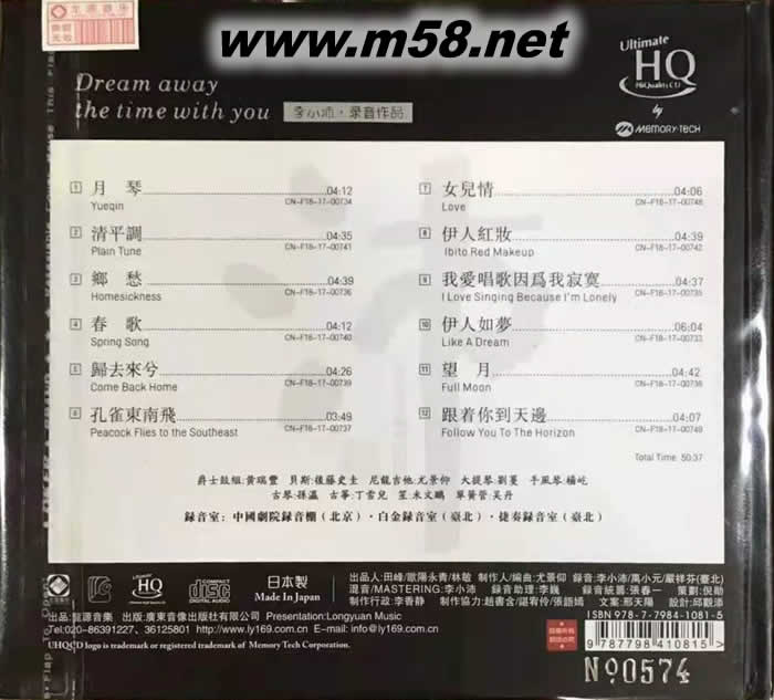 云水行 佳明 UHQCD 限量版(m58.net) 本專輯由臺灣著名音樂人尤景仰老師制作/編曲。 橫跨兩岸,分別在白金錄音室(臺北)、捷奏錄音室(臺北)、中國劇院錄音棚(北京)完成錄音,并由李小沛老師作后期混音。