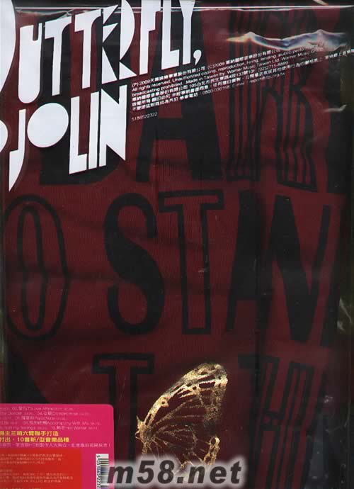 花蝴蝶 7-11便利店版(m58.net) CD+寫真+T恤(尺吋:FREE SIZE), 包裝尺寸:像A4大小 顏色:T恤白色 09年度最注目全新國語專輯 花蝴蝶 美艷炫目閃爍登場 2009 red hot jolin 敢做敢為.活得繽紛 10首HIT POP經典 蔡依林飛舞翩翩 熱爆亞洲 金曲臺前幕布后得主三頭六臂聯手打造 一年一張全力付出,10首新/型音樂品種 以花蝴蝶jolin為創作繆思,華語最HIT 創制作人大集合,創意繽紛花開泉湧! <大丈夫> 繼<舞娘>后,金曲鐵三角蔡依林,陳鎮川.阿弟仔再度合體發功.09年度最注目華語時尚嘻哈新作.強勢問鼎2009流行舞曲第一名.臺灣年度最注目男新人NICK首度神秘發聲FEATURING. <妥協> 妥協的姿態.是一種撤退的姿態, 后退其實是為了靠近,但退無可退時,我是接近了你?還是失去自己.jolin2009年第一波抒情主打歌.描述現代情感中最無奈最常見的愛情態度.F.I.R阿沁.千變萬化創作功力.全新ROCK BALLAD搖滾抒情曲. <花蝴蝶> 2009新/型人類定位主題曲.敢做敢為.活得繽紛! 自信的人站出來,開心勇敢為自己而活.變成飛舞翩翩的蝴蝶. PS1:外包裝尺寸37x28x3cm,T恤肩寬皆約45cm,衣長約60cm。