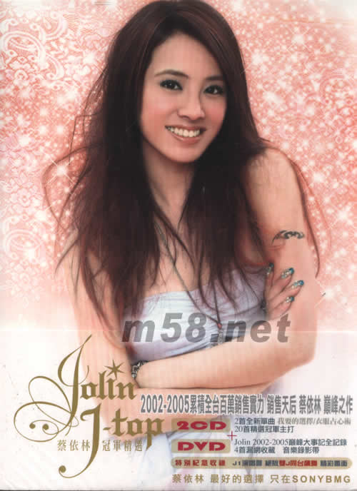 一個無法打破的音樂神話 全勝蔡依林巔鋒時刻 輝煌紀錄永恒收藏 限量預購紀念禮:Jolin 2002-2006 Top全紀錄寫真書 52頁豪華精裝 一次收藏Jolin全盛巔峰期大事記 特別收錄:J1演唱會從未曝光 絕版雙J (周杰倫&蔡依林) 互飆舞技精彩照片 2006/04/21 開始預購 2006/05/05 全亞洲同步發行 冠軍專輯 2CD + 1DVD 超值收錄Jolin登上流行天后最顛峰20首冠軍曲 + 2首全新主打歌曲 J-Top暢銷組曲 + Jolin全勝巔峰期大事記DVD