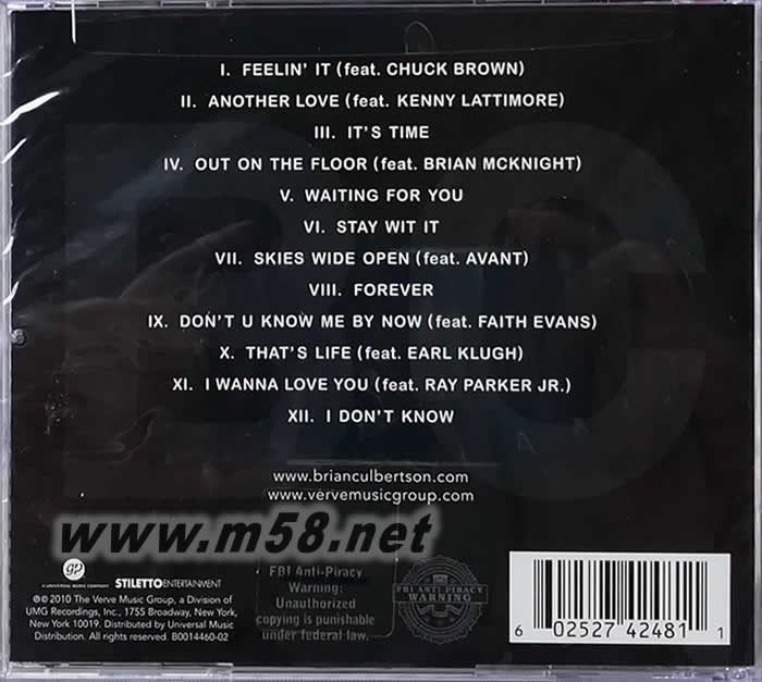 Brian Culbertson的名字已經在爵士樂界活躍了十年多, 很早以前, 他已經出版第一張個人大碟, "Long Night Out", 是由他親自監制的; 他不單止懂得玩多種的樂器, 更懂作曲, 他的才華令到他當年年紀輕輕已得到爵士樂權威雜志Down Beat的贊賞, 名氣漸增!! 多年來, 在WEA旗下推出了數張受歡迎的唱片, 和不少出色的樂手合作, 例如有David Sanborn, Marcus Miller, Herb Alpert等合作, 之后在今年(2005)正式加盟GRP Records并推出首張大碟, 充滿感性的精彩錄音!!