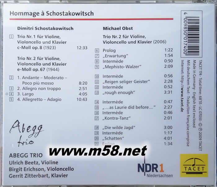 獻給蕭士塔高維契 Hommage a Schostakowitsch(鋼琴、大提琴、小提琴)專輯背面圖片