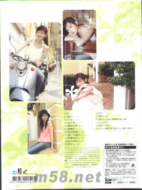 Cyndi Loves You (影音升級版)(m58.net) 臺灣,新加坡銷售排行榜第1名冠軍專輯 只有歌迷支持,才能讓心凌搶上第一名 美少女一步一腳印唱出大未來 全新寫真:十張澳門短滯記寫真明信片 影音升級版CD+VCD加贈 1、心凌親自示范{愛你}舞蹈教學示范帶 2、三首MV 愛你 月光 明天見 3、CYNDI[澳門短滯記]電視專輯30分鐘完整版全收錄。