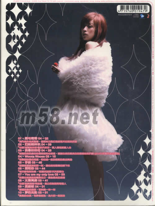 01. 睫毛彎彎 海內外唯美獨尊,國際東方風打造銷量天后絕美快歌 02. 打起精神來 “心凌”溫暖陪伴系 最新代表作,萬人傳唱振奮人心 03. 我會好好的 謝謝伍佰把最好的情歌留給心凌唱,謝謝心凌把美的回憶唱給我們聽(GOTO手表代言主題曲) 04. Woosa Woosa 節奏明快開心飛揚,和心凌一起放輕松的最佳舞曲 05. 手表 愛情最濃最美的那一刻,讓心凌用歌聲紀錄下來 06. 想和你 每天都有新快樂,“搖擺民謠風”天天都開心 07. You are my only love 欣賞心凌真假音轉換功力,體會最美的愛情 08. 太陽萬歲 心凌“鼓舞情歌”再登場,熱力四射照亮每個人 09. 丟銅板 愛情就像丟銅板,苦與樂一半一半 10. 夢的光點 勇敢的心凌,有夢最堅強,為大家一起加油