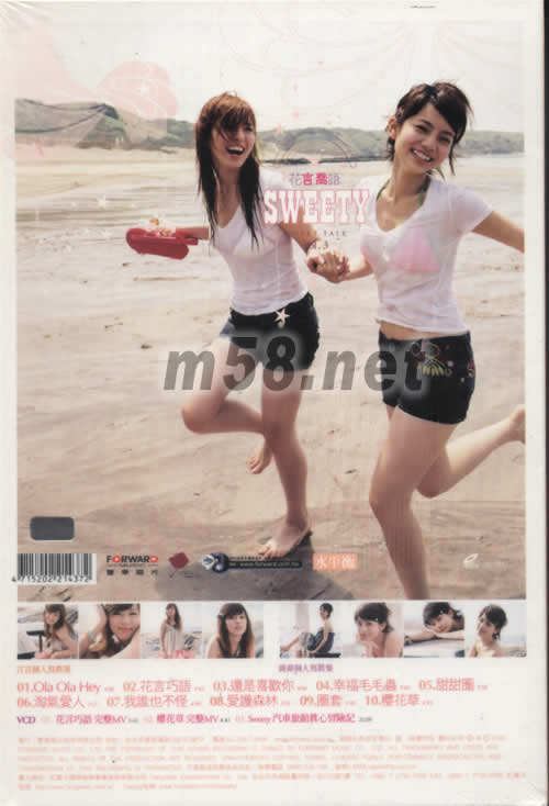 花言喬語(淘氣青春慶功大改版)(m58.net) 2006全心專輯 WEETY花言喬語 淘氣青春慶功大改版 挑戰尺度:趣意盎然:青春可愛無限大放送 罕見大手筆加贈 SWEETY雙本個人寫真 →言言個人寫真集+喬喬個人寫真集 首次曝光 汽車旅館真心大冒險VCD/全長22分鐘 人氣收藏花言巧語完整MV+櫻花草完整MV
