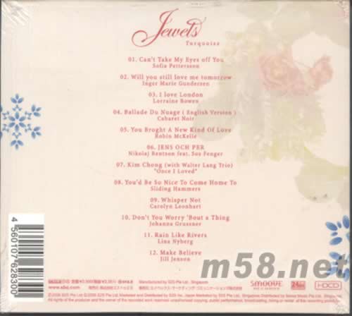 JAZZ VOCALS璀璨之聲:爵士人聲精選 JEWELS TURQUOISE(日本版)(m58.net) ~動聽絕倫的爵士餐宴、無法抗拒的奢華誘惑~ 隨續創下銷售佳績的[意亂情迷]后,又一張爵士人聲的精選集,同樣所選的都是精彩爵士人聲,不過這次專注在北歐歌手,如Sofia Pettersson、Inger Marie Gundersen 與Johanna Grussne等優秀的爵士歌手。前3首精彩的歌曲就帶出整張如寶石般[湛藍、璀璨]的基調。爵士女聲唱將Robin Mckelle 與Robbie Wycoff的合唱,帶有濃濃復古風味,更是片中的經典。在歐陸引起注目的韓國歌手Kim Chong 搭配Walter Lang三重奏的演出同樣讓人驚艷。全輯12首都是爵士人聲中的精彩珠玉小品,錄音絕佳加上HDCD編碼,演錄具佳的音樂帶給您全新的感動。