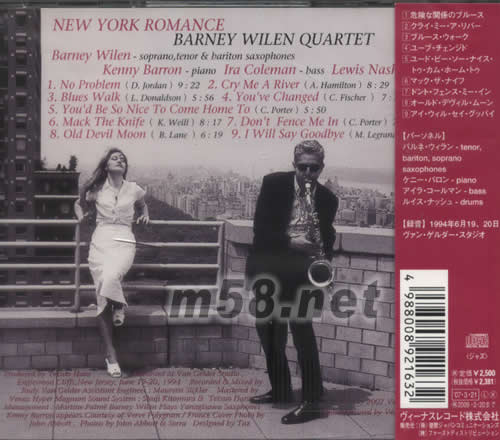 昔士風(fēng)巨星BARNEY WILEN及鋼琴大師KENNY BARRON以四重奏演繹多首名曲,精彩的演出及浪漫的情懷達(dá)至極點(diǎn),忘我的演出令人著迷.天碟錄音師RUDY VAN GELDER錄制音色靚絕.