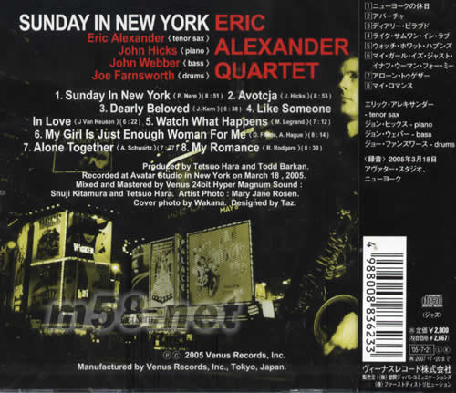 都會閑情(HIFI昔士風重奏)(m58.net) 都會閑情(HI FI昔士風四重奏) 美國著名昔士風名家ERIC ALEXANDER以四重奏演繹多首名曲,SUNDAY IN NEW YORK是賞心悅而耳的大都會情懷作品。MY ROMANCC正好用來引證日本VENUS的靚絕音色,每一細節皆表露無遺,天碟級爵士專輯。