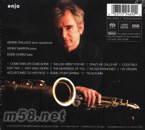 HIFI浪漫爵士三重奏SACD(m58.net) HI FI浪漫爵士三重奏(SACD) 昔士風大師BONNIE WALLACE秋拍KENNY BARRON及EDDIE GOMEZ以五重奏演繹多首名曲,如此鉆石陣容互相施展渾身解數,響起了浪漫的音調,讓情感完全流露。通透靚絕的音色更覺傳神。