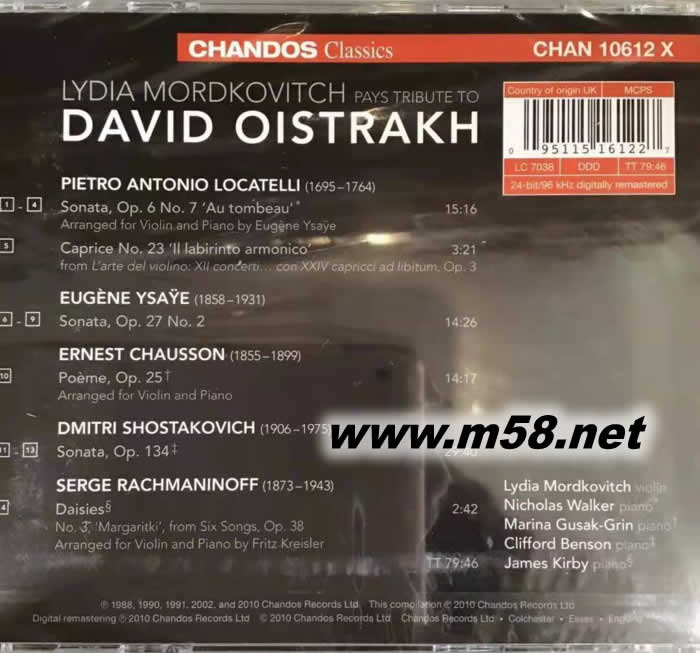 Pays Tribute to David Oistrakh 向大衛致敬(m58.net) 俄羅斯小提琴巨擘大衛歐伊斯特拉赫(David Oistrakh)第一女弟子 &助教, 精彩演繹多首罕有小提琴經典(羅卡泰利/意沙伊/蕭頌/蕭斯塔高維奇/ 拉赫曼尼諾夫) 著名發燒圣地{穀倉(Snape Maltings)} 音樂廳錄音 ;音色溫暖通透, 音樂質感一流