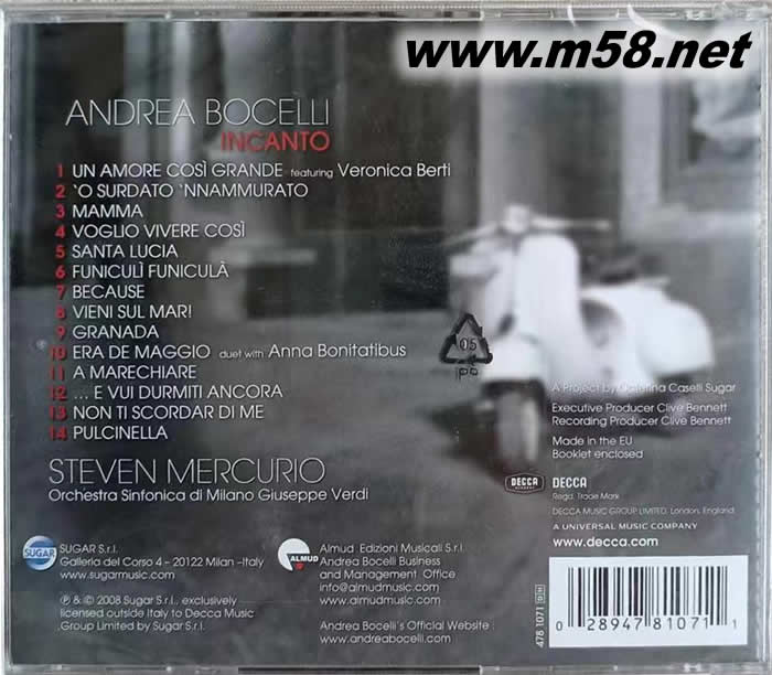 01. Un amore cosě grande 02. O‘ surdato ‚nnammurato 03. Mamma 04. Voglio vivere cosě 05. Santa Lucia 06. Funiculě Funiculŕ 07. Because 08. Vieni sul mar 09. Granada 10. Era de Maggio 11. A Marechiare 12. E vui durmiti ancora 13. Non ti scordar di me 14. Pulcinella