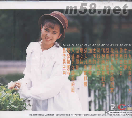 01. 十九歲的最后一天 02. 生日快樂 03. 帶我去月亮 04. 我累了 05. 我們是最好的朋友 06. 驕傲的面具 07. 很想給你寫封信 08. 可以不可以 09. 太多的心 10. 加一些想像 11. 落入凡間的精靈 12. 壞女孩 13. 街頭頑童 14. 永遠是你純純的臉 15. 緊緊擁抱我 16. 最佳男主角