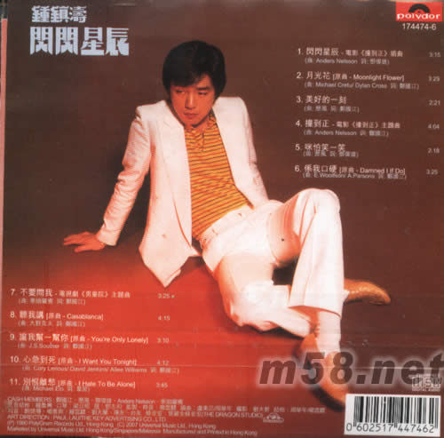 01. 閃閃星辰 -電影《撞到正》插曲 02. 月光花 03. 美好的一刻 04. 撞到正 -電影《撞到正》主題曲 05. 咪怕笑一笑 06. 是我口硬 07. 不要問我 -電視劇《男童院》主題曲 08. 聽我講 09. 讓我幫一幫你 10. 心急到死 11. 別恨離愁