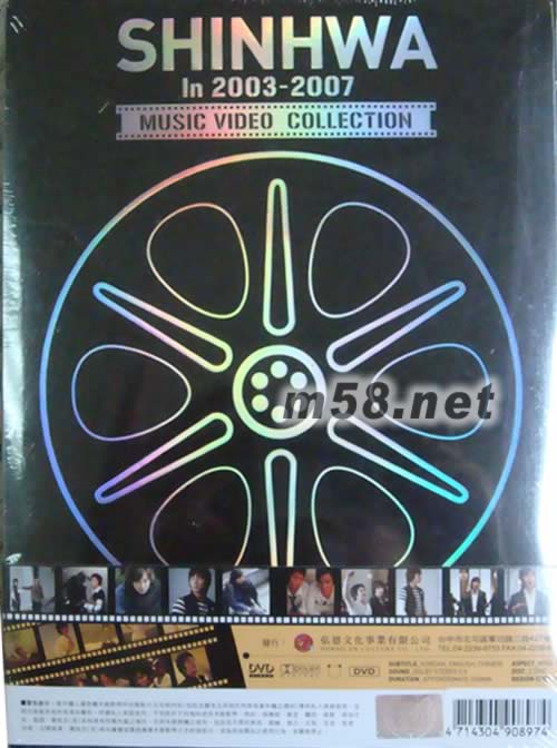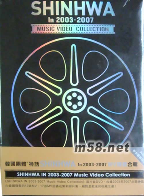 神話2003-2007MV精選合輯 (2DVD) (臺灣版)(m58.net) 《Shinhwa 2003-2007 Music Video Collection》兩片裝DVD,收錄2003至2007年間神話在韓國發表的19首MV、17首MV拍攝花絮和照片集,絕對是歌迷的收藏之選! 【影音規格】 內附:中韓文對照歌詞本 光碟版本:2片DVD (MV:D-5+花絮:D-9) 發音語言:韓語原音 字幕選擇:MV-無字幕 花絮-韓文.英文.中文字幕 螢幕比例:4:3 片長時間:120分鐘 音效格式:AC-3 2.0 影片區碼:3區