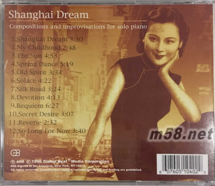 這是一張關于鄉愁的專輯,在琴鍵起落的片刻,我們仿佛又回到20、30年代的上海。江天的上海夢,就像是一張美麗的水彩畫,輕輕柔柔兀自優雅的矜持著那老上海的風韻。看不完的繁華如夢,說不盡的風流傳奇,十里洋場,異國情調,而一個老舊的胭脂盒,一張斑駁的廣告畫,就足以色起對上海的幻想與思念。