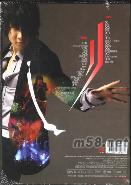 06-07 [雙霸] 合輯影音 DVD(m58.net) 來(lái)自新加坡的流行音樂(lè)歌手、作曲人、作詞人林俊杰(JJ), 2004年憑一曲「江南」一曲而紅遍兩岸三地,是備受華人音樂(lè)贊譽(yù)的是他的驚人創(chuàng)作力,2004年成為臺(tái)灣金曲獎(jiǎng)最佳新人獎(jiǎng)得主,2006年發(fā)行的《曹操》至今年的《西界》中的多首主打歌也占據(jù)各大流行榜。 JJ 為後起之秀立下標(biāo)竿的創(chuàng)新視覺(jué)MV動(dòng)畫,而他尤其愛(ài)把把音樂(lè)視覺(jué)化,曾為「曹操」及「進(jìn)化論」 MV 作了不少大膽的嘗試,讓樂(lè)迷在視覺(jué)上發(fā)現(xiàn)JJ私底下多變的一面;又在《西界》碟中「殺手」的MV更暴力題材及超眩的舞技示人,效果相當(dāng)驚艷。 這張《林俊杰06-07 [雙霸]合輯影音DVD》一次收藏18首的百萬(wàn)制作MV,包括了「曹操」、「不死之身」、「殺手」、「西界」和「KO」,當(dāng)中集結(jié)了亞洲演藝達(dá)人心血于一的影音光碟,并由日本藝術(shù)大師信藤三雄主動(dòng)提出合作,而日本歌姬米希亞聞樂(lè)慕名邀歌。這也是美國(guó)舞蹈電影宗師Dave Scott首度為亞洲歌手編舞。