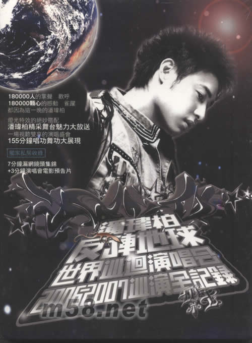 反轉(zhuǎn)地球世界巡回演唱會2006-2007巡演全記錄DVD(m58.net) DVD-9 180000人的掌聲,歡呼 180000顆心的感動,雀躍,都因為這一晚的潘瑋柏。 燈光特效的絕妙搭配 潘瑋柏精彩舞臺魅力大放送 一場視聽雙享的演唱盛會 155分鐘唱功舞功大展現(xiàn) 獨家私房收錄:7分鐘漏網(wǎng)鏡頭集錦+3分鐘演唱會電影預(yù)告片
