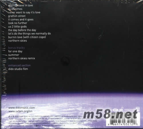 01. don't believe in love 02. quiet times 03. never want to say it's love 04. grafton street 05. it comes and it goes 06. look no further 07. us 2 little gods 08. the day before the day 09. let's do the things we normally do 10. burnin love(with citizen cope) 11. northern skies bonus track 01. for one day 02. summer 03. northern skies remix enhanced section dido studio film
