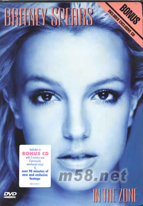 IN THE ZONE DVD+CD(m58.net) WITH BRITNEY SPEARS--IN THE ZONE,GET READY TO SEE BRITNEY AS YOU NEVER HAVE BEFORE,WITH WORLD PREMIERE PERFORMANCES AND MOMENTS IN THE MAKING OF HER LATEST MULTI-PLATINUM ALBUM,IH THE ZONE 。COME INTO BRITNEY’S PROFESSIONAL AND PRIVATE LIFE:MEET HER FAMILY,THE “INNER CERCLE”AND WITNESS POP MUSIC’S MOST DYNAMIC PARTNERSHIP,“ME AGAINST THE MUSIC,‘FEATURING MADONNA。BRITNEY SPEARS-IN THE ZONE FEATUES NOT ONLY BRITNEY’S GROUNDBREAKING AVC SPECIAL,BUT ALSO HER PREMIERE ERFORMANCE ON MTV’S ”TRL“PROGRAM,LIVE IN TIMES SQUARE,NEW YORK CITY。HERE ,A YOUNG WOMAN COMES OF AGE,TAKES CONTROL AND TAKES RISKS AT THE CENTER OF THE STORM THAT IS BRITNEY SPEARS。