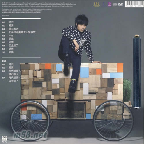 CD 01. 時代 02. 獨男 03. 鉆石敗犬 04. 北半球選美離奇火警事故 05. Hea 06. 愛風 07. 迷博 08. 公主病了 09. 蝸居 10. 惡搞 DVD 01. 時代 02. 獨男 CD 01. 時代 02. 獨男 03. 鉆石敗犬 04. 北半球選美離奇火警事故 05. Hea 06. 愛風 07. 迷博 08. 公主病了 09. 蝸居 10. 惡搞 DVD 01. 時代 02. 獨男 03. 時代檔案 一 鉆石敗犬 04. 時代檔案 二 公主病了