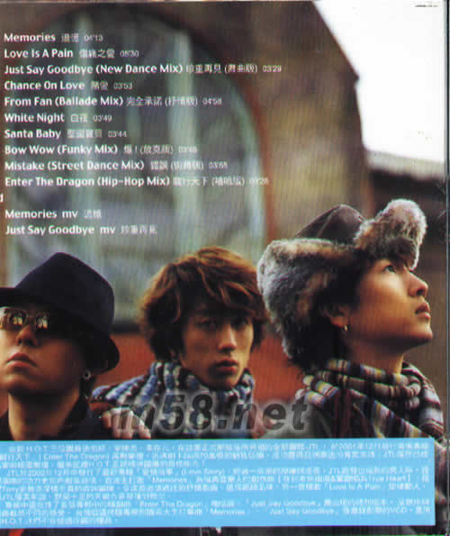 1.Memories 追憶 4''13 2.Love Is A Pain 傷痛之愛 5''30 3.Just Say Goodbye (New Dance Mix) 珍重再見 (舞曲版) 3''29 4.Chance Of Love 賭愛 3''53 5.From Fan (Ballade Mix) 完全承諾 (抒情版) 4''58 6.White Night 白夜 3''49 7.Santa Baby 圣誕寶貝 3''44 8.Bow Bow (Funky Mix) 爆! (放克版) 3''48 9.Mistake (Street Dance Mix) 錯(cuò)誤 (街舞版) 3''55 10.Enter The Dragon (Hip-Hop Mix) 龍行天下 (嘻哈版) 3''28