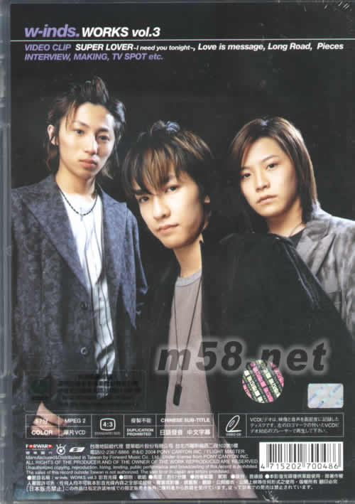 價格為估,以實到貨為準! WORKS VOL.3(m58.net) W-INDS音樂錄影帶精選輯VOL.3 <初回限定盤特典> W-INDS.寫真名信片 VIDEO CLIP SUPER LOVER--I NEED YOU TONMIGHT-,LOVE IS MESSAGE,LONG ROAD,PIECES IN TERVIEW,MAKING,TV SPOT ETC。