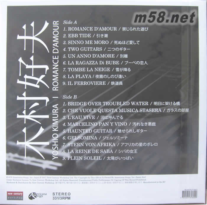 抒情浪漫吉他集發燒天碟 YOSHIO KIMURA - ROMANCE D ADMOUR 黑膠 限量版專輯背面圖片