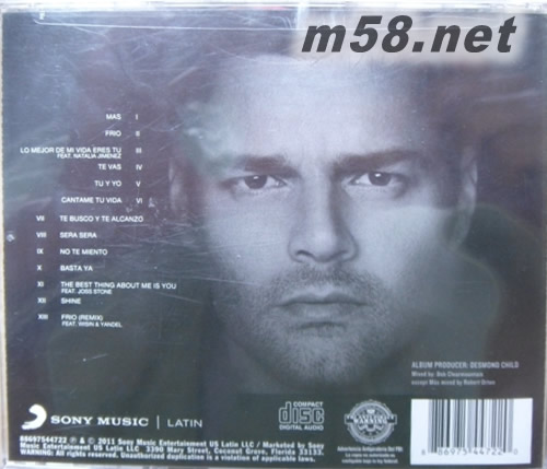烈愛宣言 Musica + Alma + Sexo(美版)(m58.net) ◎拉丁性感雙聲帶天王醞釀6年,全新西、英文雙語大碟。夏奇拉、邦喬飛製作人全力打造。 ◎創下全球6000萬專輯銷量,獲1座葛萊美、3座拉丁葛萊美及8座世界音樂獎輝煌成績。 ◎首支主打〈The Best Thing About Me Is You〉,特邀白人靈魂歌姬Joss Stone獻聲,西語版〈Lo Mejor De Mi Vida Eres Tu〉榮登告示牌拉丁榜冠軍。